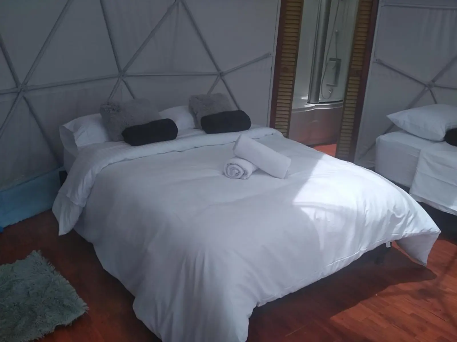 Discover a unique experience in our Glamping, a place where tranquility, comfort and nature meet. Each accommodation is designed for you to enjoy a peaceful rest, with hotel-quality beds, private bathroom, hot water, and WiFi. From your space, you can contemplate the view of the reservoir while relaxing outdoors, connecting with nature without giving up the comforts you deserve.